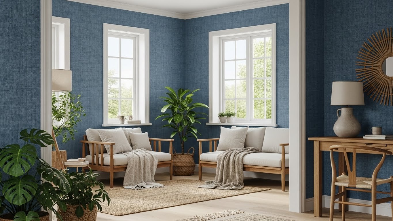 Blue is a familiar color in clothes and decor, but people often forget how good it looks on walls. In a private house it feels especially natural. You see the sky, trees and sometimes even water from the windows, and this shade continues that calm mood inside. When you choose blue textured wallpaper, you add more than just color. The walls gain depth and a soft, cozy look that suits both rustic homes and modern cottages.